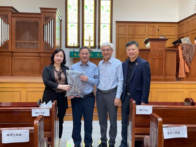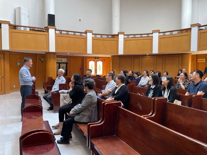 在谢炳国院长陪同下,同工们还参观了学院礼堂管风琴、爱国主义教研室、图书馆等,对学院优美的环境,特色的圣乐教育,以及图书馆丰富的藏书给予高度赞赏。