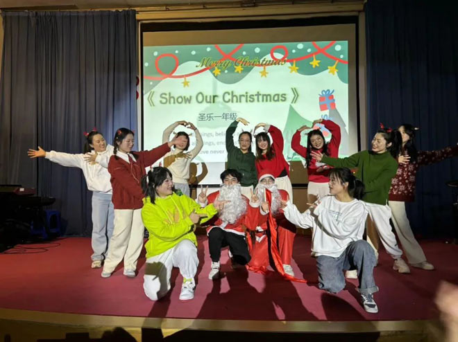 联欢过程中,大家彼此交换圣诞礼物,“圣诞老人”也出场抛洒小礼物,大家欢笑不断。最后,谢炳国院长带领老师向同学们报佳音,欢乐的气氛达到高峰。