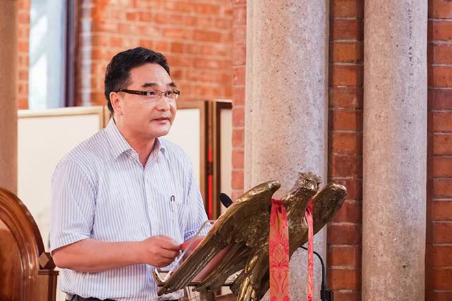 上海市民族和宗教事务局二级巡视员何建先生在典礼上致辞,向圆满完成学业的神学院毕业生表示热烈祝贺,并向辛勤培育神学生的教职员工、家长以及关心支持神学教育的上海市基督教界人士致以诚挚谢意。何建先生殷切寄语毕业生,希望他们始终心怀家国,勇担时代使命,在实现中华民族伟大复兴的征程中践行个人理想,积极推进基督教中国化进程,以坚定的信念迎接未来挑战。